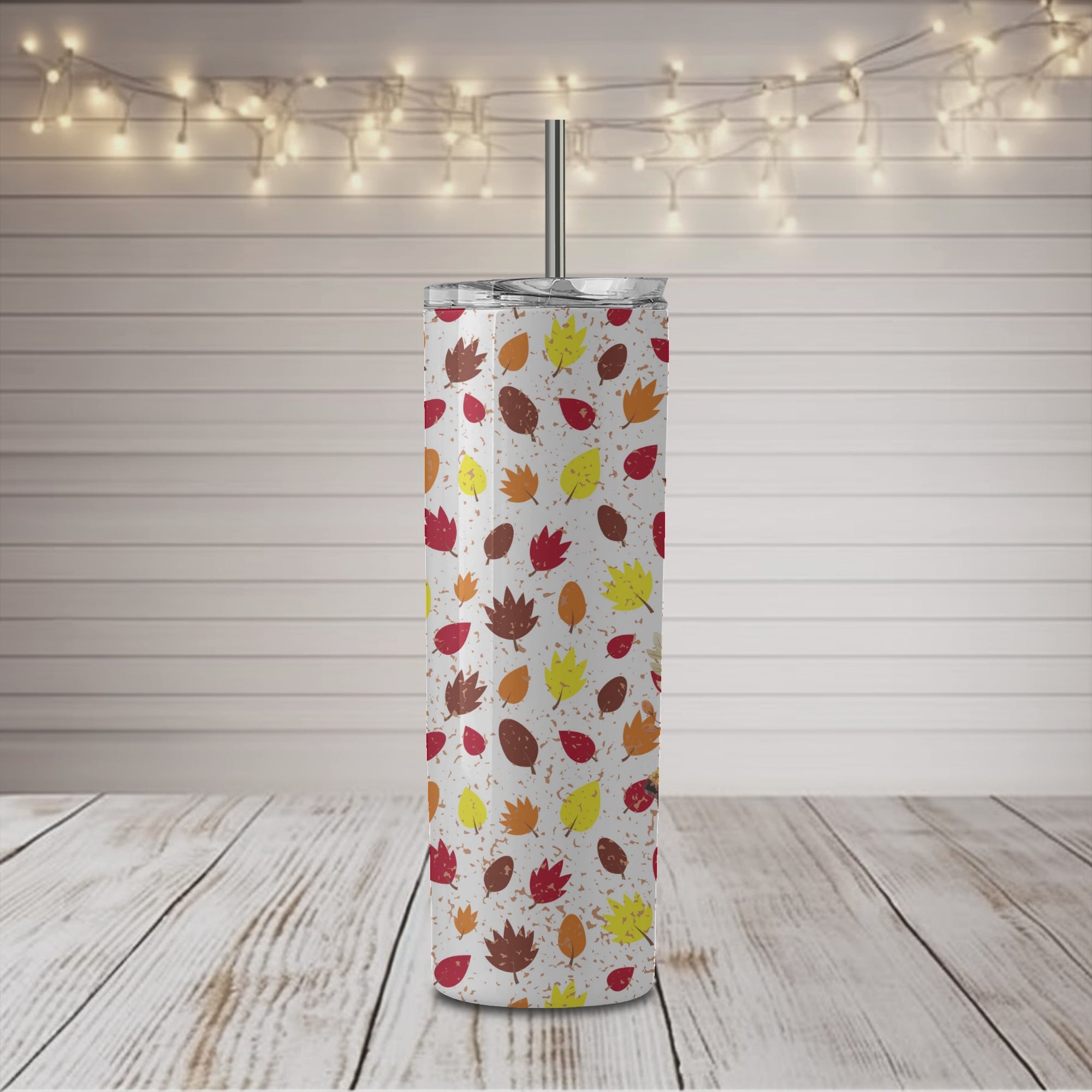 Vaso delgado de 20 oz con diseño de ardilla otoñal y hojas