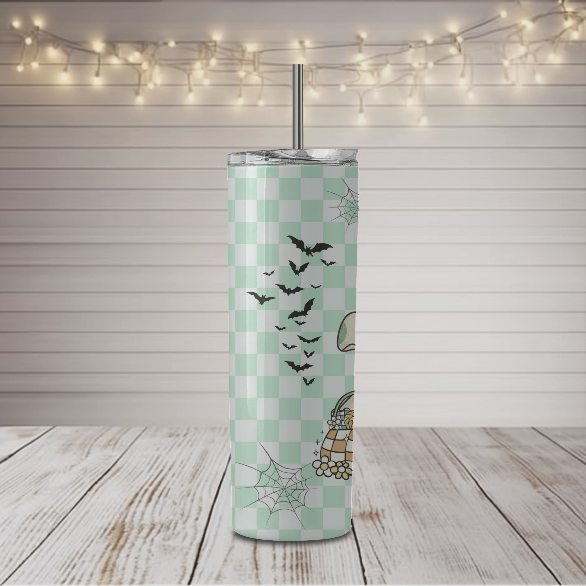 Halloween Retro Ghost Pastel Teal 20oz Skinny Sublimation Tumbler